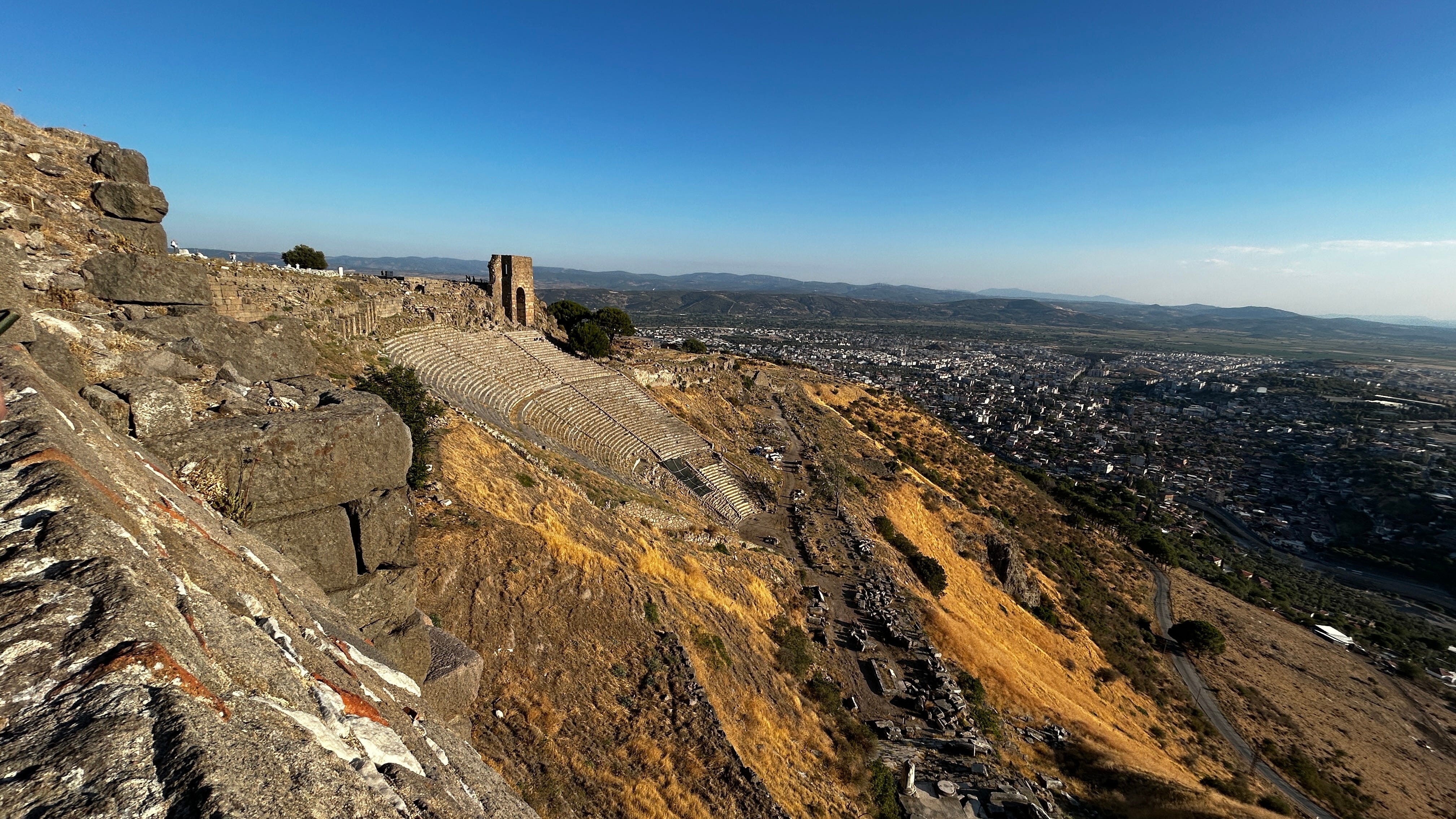Bu yaz ilk kez Bergama’ya gittim. Üç gün boyunca Bergama Tiyatro Festivali için ordaydım, döndüm ama aklım hâlen orda. Akropol’ü gezerken öyle bir büyülendim ki günlerdir arkeologların videolarını izliyor, yazılarını okuyorum. Antik kenti anlamanın kıyısından bile geçemediğimi hissediyorum. Buna rağmen Korhan’ı dinlerken öyle bir an yaşadım ki sanki şifalandım.